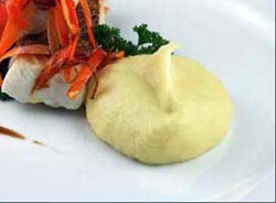 This wonderful dish from Quadri Restaurant in Venice, Italy is made from soft potato puree with Venetian lagoon seafood and black cuttlefish ink. -- See Recipe